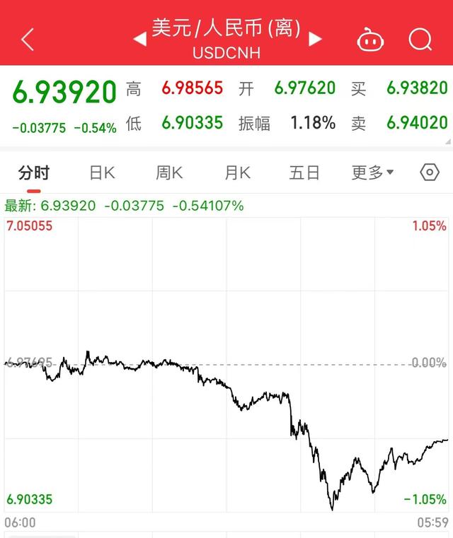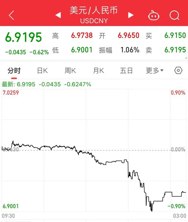 3月11日收盘,在岸人民币兑美元收报6.9195,上涨435点;离岸人民币兑美元收报6.93920元,上涨377点。